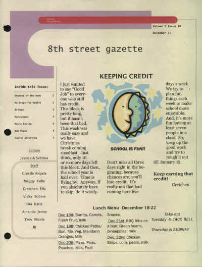 The 8th Street Gazette is published weekly at the school where I teach, Huss Academy. In this addition, one of my past students, Katie, has written an article about publishing web sites in my computer classes.