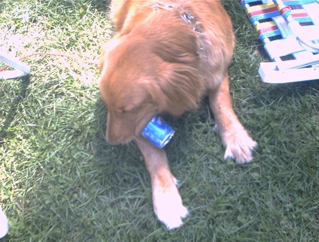 Simba thought he could lick the Labatt's can! Don't worry - I took it away after this pic! |