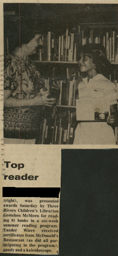This is the certificate and article in the paper (below) that I received for winning the summer reading program at the library. |